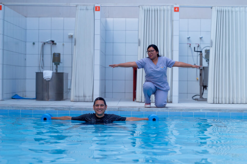 La Hidroterapia es una técnica de rehabilitación que utiliza las propiedades del agua —flotación, temperatura y resistencia— para facilitar el movimiento, aliviar el dolor y mejorar la función corporal.